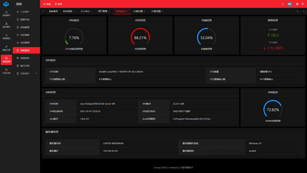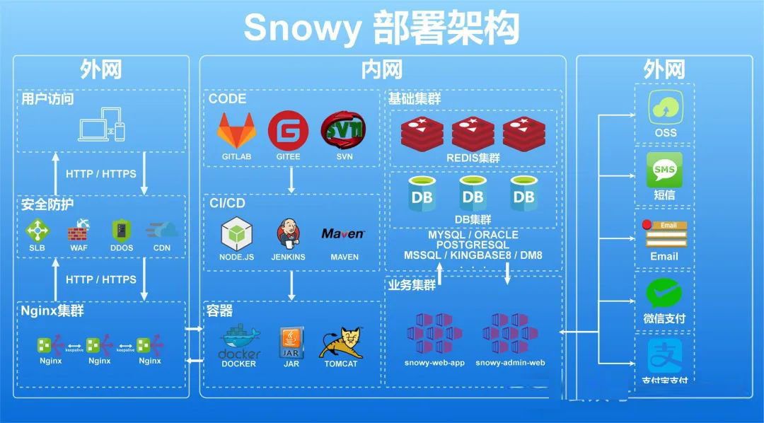 Snowy(SnowyAdmin)是国内首个国密前后端分离快速开发平台,集成国密加解密插件, 软件层面完全符合等保测评要求,同时实现国产化机型、中间件、数据库适配,是您的不二之选!技术框架与密码结合,让更多的人认识密码,使用密码;更是让前后分离“密”不可分。