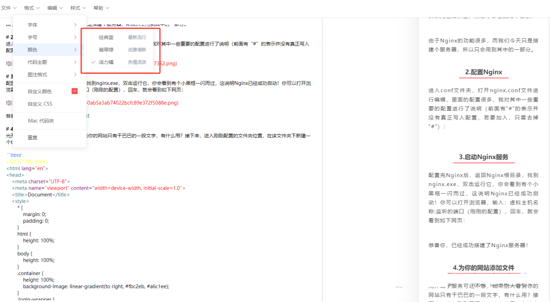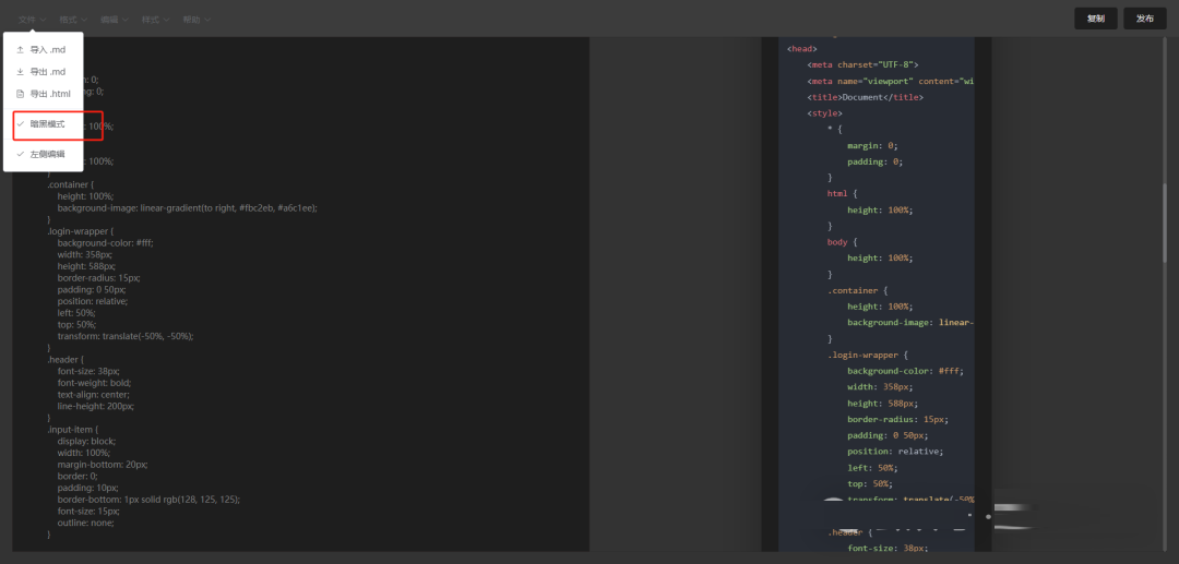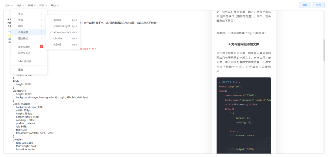 一款高度简洁的微信 Markdown 编辑器:支持 Markdown 所有基础语法、色盘取色、一键复制并粘贴到公众号后台、多图上传、一键下载文档、自定义 CSS 样式、一键重置等特性。