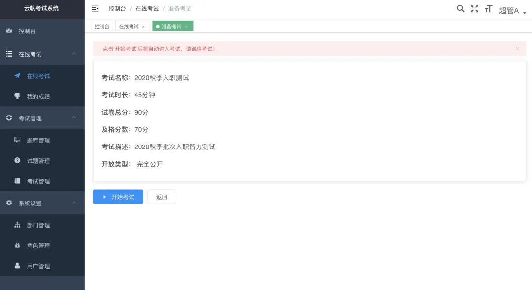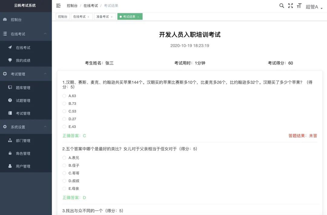 今天给大家介绍一款多角色在线培训考试系统,系统集成了用户管理、角色管理、部门管理、题库管理、试题管理、试题导入导出、考试管理、在线考试、错题训练等功能,考试流程完善。