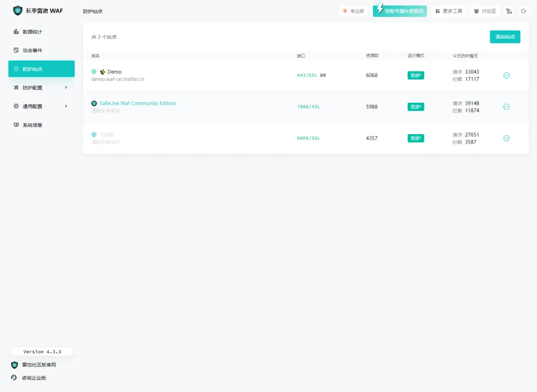 今天给大家介绍一款国产的 Web 防火墙工具——雷池(SafeLine)。