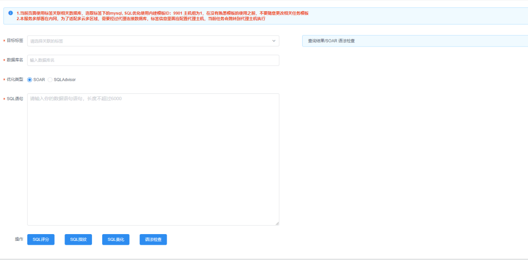 主要做一些代码发布的配置和一些SQL相关配置,任务发布后续将会支持更多业务模块,目前以任务发布和SQL优化审核相关的配置为主