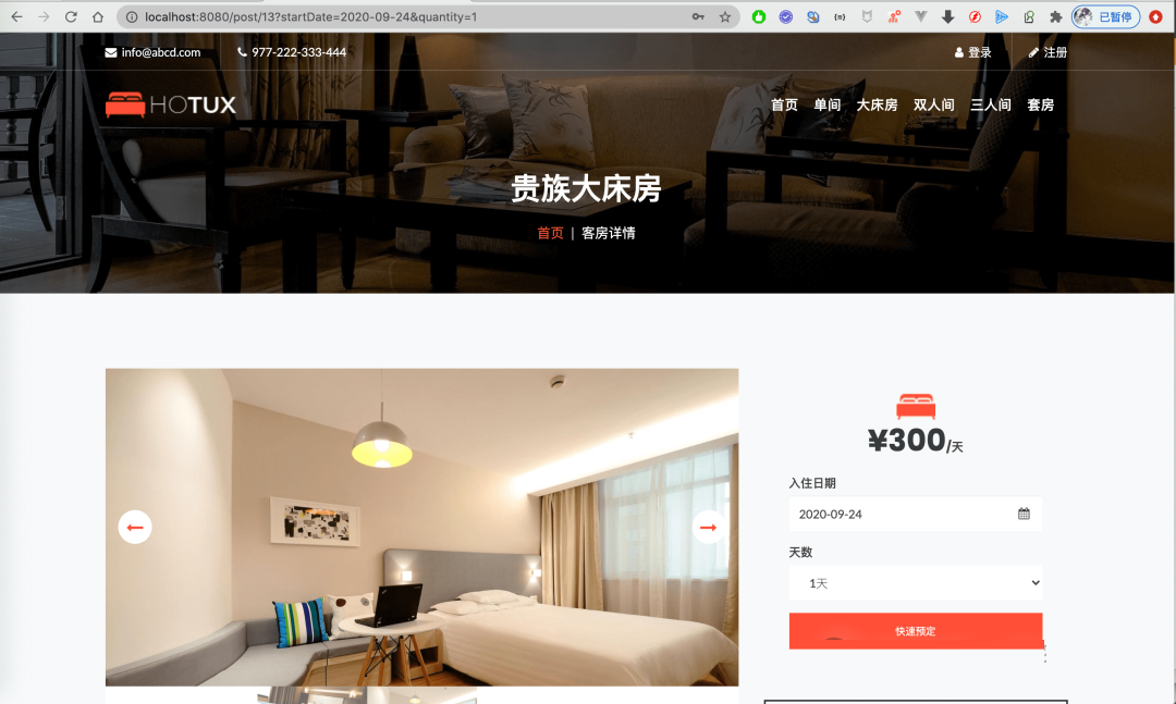 客户功能: 注册、登录、找回密码、客房浏览查询、预定客房、查看自己订单列表