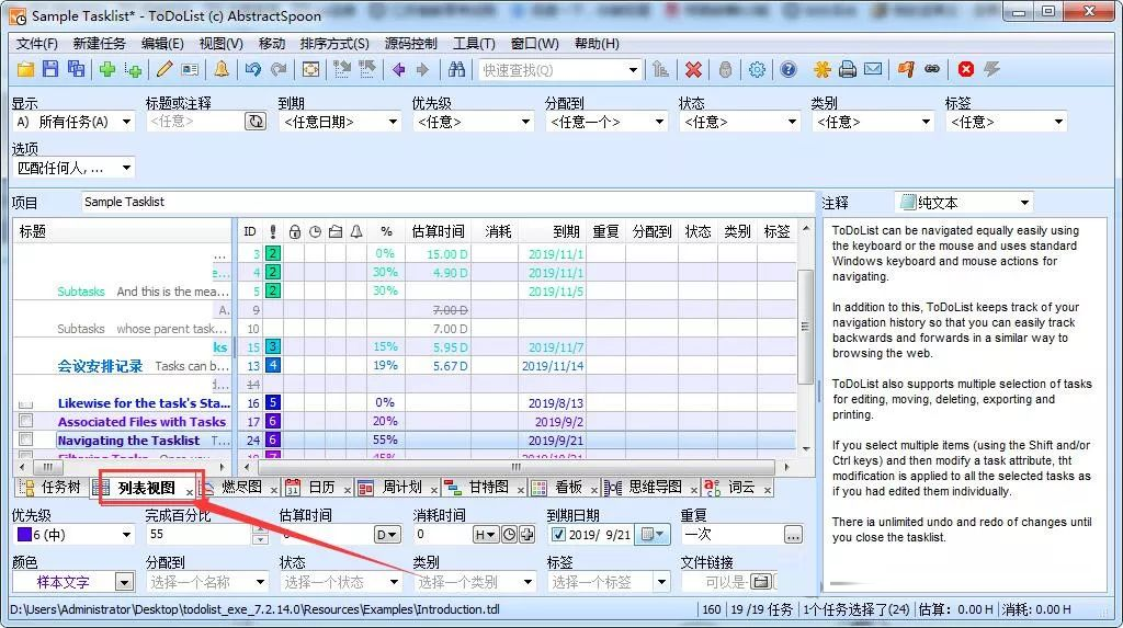 列表视图展现每个人任务的目前现状属性细分。它们只是相同基本任务数据的替代表示,具有不同的查看和操作相同内置属性的方式。