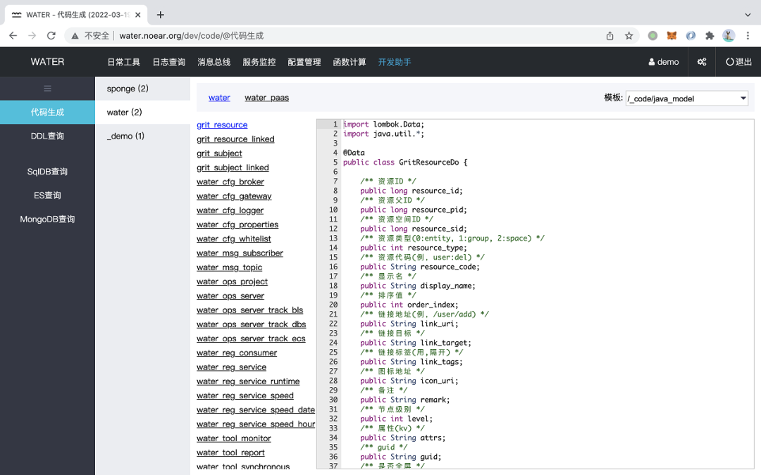 Map map = demoDb.table("water_reg_service").limit(1).selectMap("*");