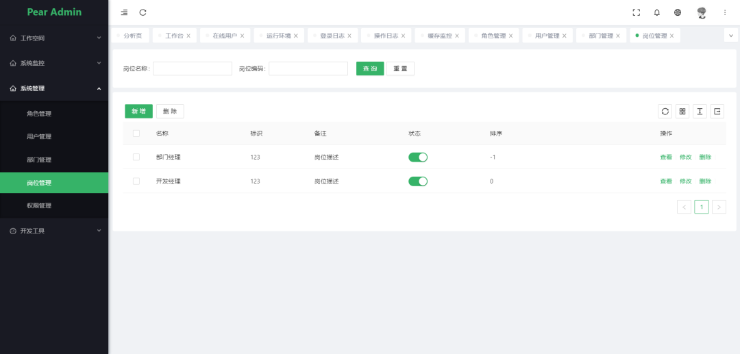 岗位管理: 配置系统用户所属担任职务。 -