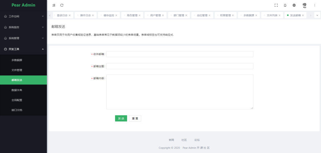 邮件发送: 发送邮件功能。 -