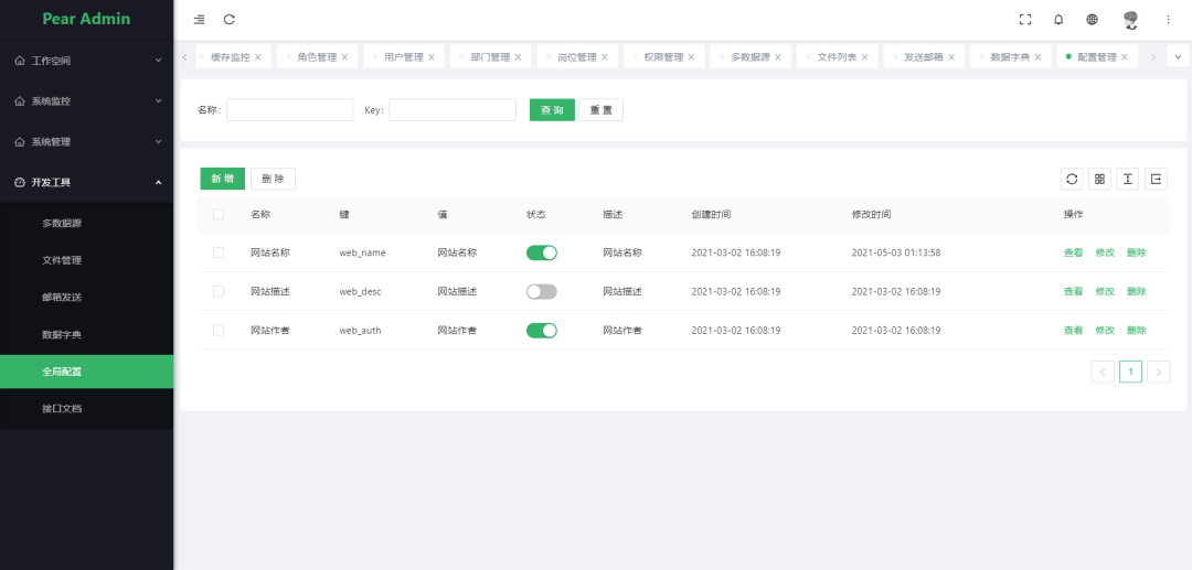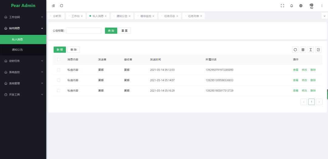 定时任务: 在线(添加、修改、删除)任务调度包含执行结果日志。 -