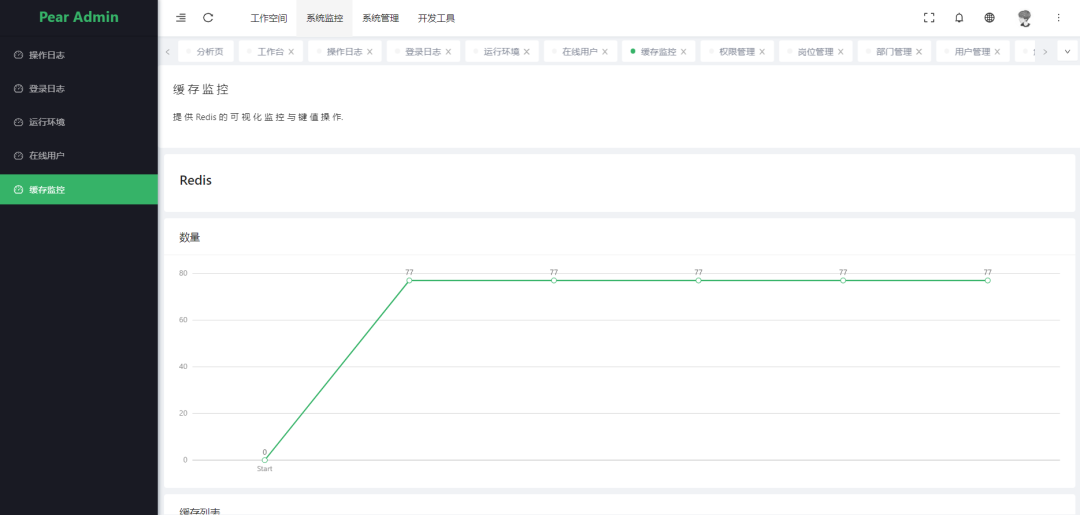 缓存监控: 对系统的缓存查询,删除、清空等操作。 -