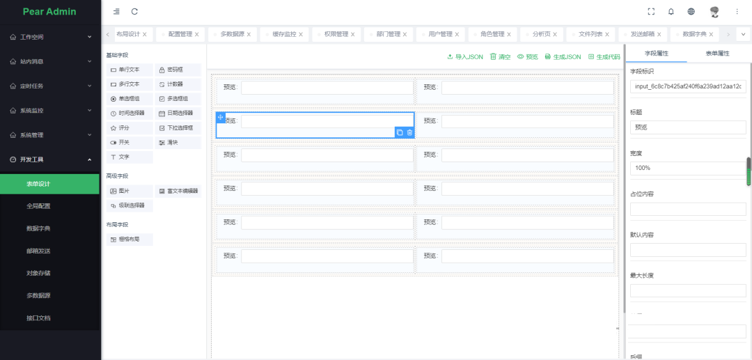 表单设计: 拖动表单元素生成相应的HTML代码。 -