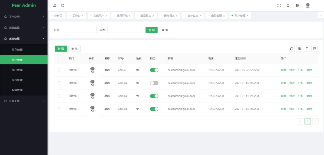 用户管理: 用户是系统操作者,该功能主要完成系统用户配置。 -