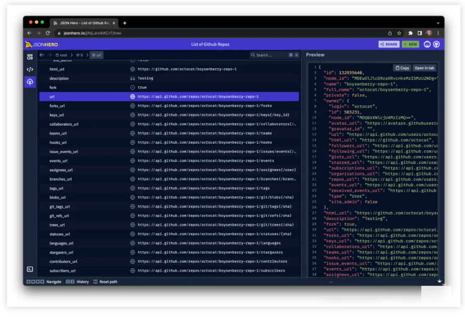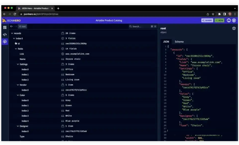 JSON Hero 是一个简单实用的 JSON 工具,通过简洁美观的 UI 及增强的额外功能,使得阅读和理解 JSON 文档变得更容易、直观。