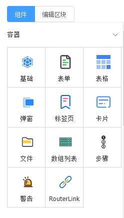 首先选择场景编辑器(表单、表格、区块等),场景编辑器渲染到页面 -