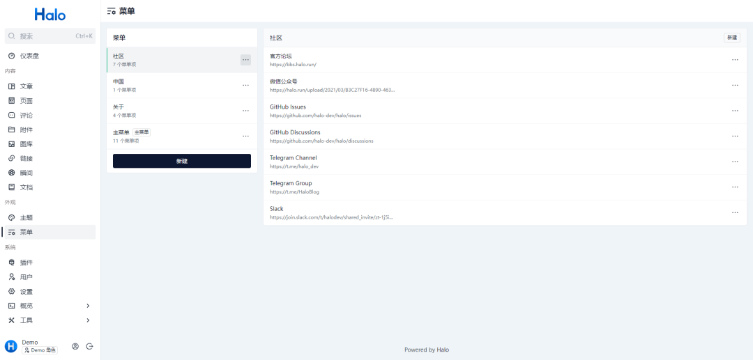 Halo 是一个个人独立博客系统,该项目后端主要基于 Java,前端由 Vue 构建,有多种主题可自由选择,并且在官网上有非常详细的部署安装文档,即使是新手也能成功搭建。