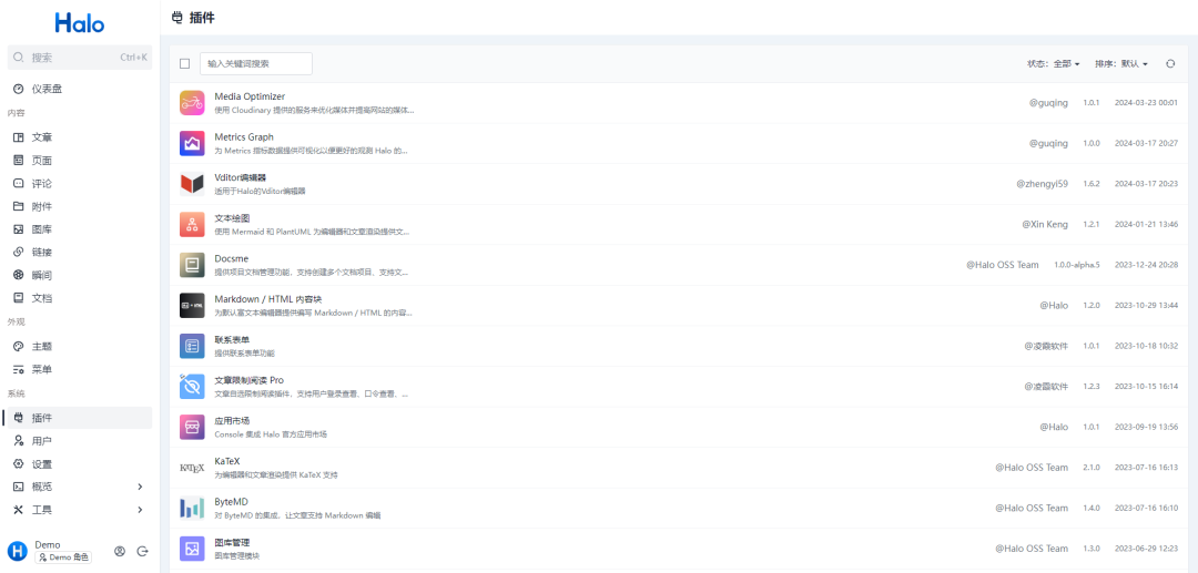 支持在插件运行时为系统添加新功能,同时保持 Halo 自身的简洁轻量。这种灵活的插件机制让用户根据自身需求自由扩展 Halo 的功能,帮助用户实现富有想象力的站点。