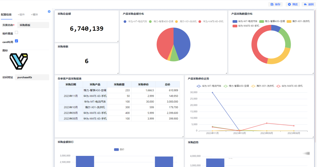 以图形化的方式配置页面,可实现页面,报表,看板的配置功能