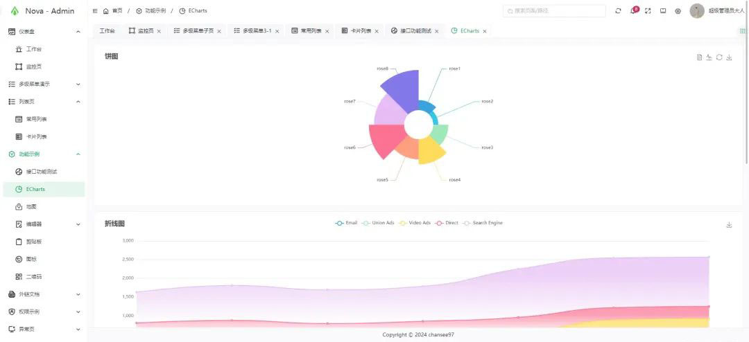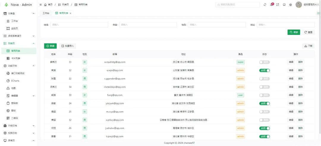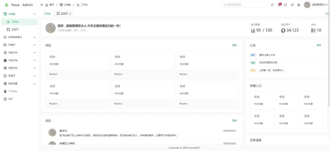 Nova-admin[1]是一个基于Vue3、Vite5、Typescript、Naive UI, 简洁干净后台管理模板,用简单的方式实现完整功能,并尽可能的考虑代码规范,易读易理解无过度封装,方便二次开发。