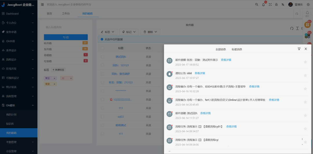 真正实现了低代码开发,强大的代码生成器让前后端代码一键生成,帮助Java项目解决70%重复工作,Online表单开发、Online报表、报表配置能力、在线图表设计、大屏设计、移动配置能力、表单设计器、在线设计流程、流程自动化配置、插件能力等等全部开箱即用!