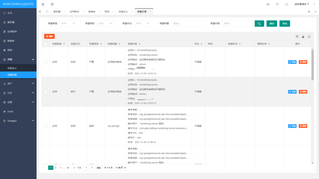 实时监测告警; -