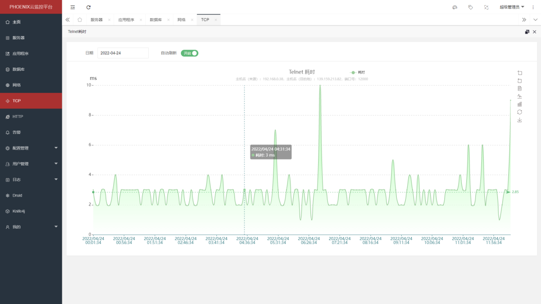 支持监控TCP服务状态;