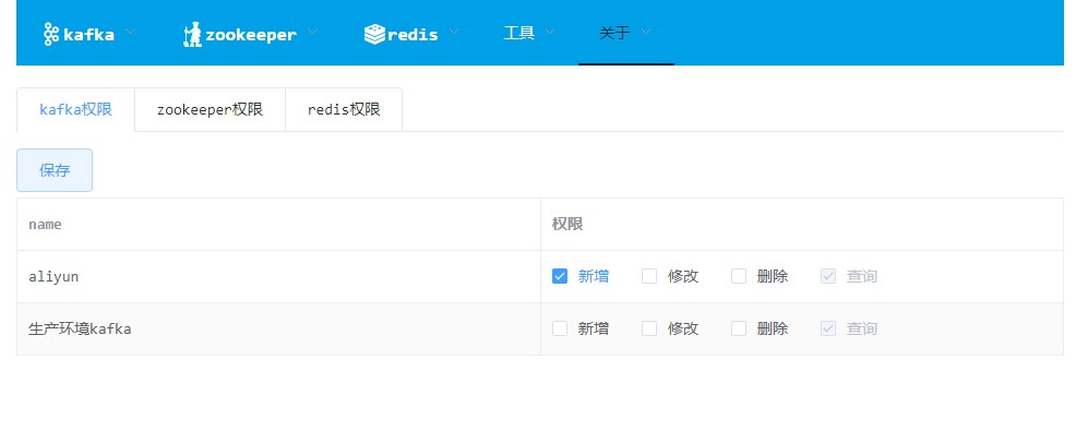 支持权限控制,可以自定义不同环境的新增、修改、删除权限;默认分配只读权限,避免用户的误操作
