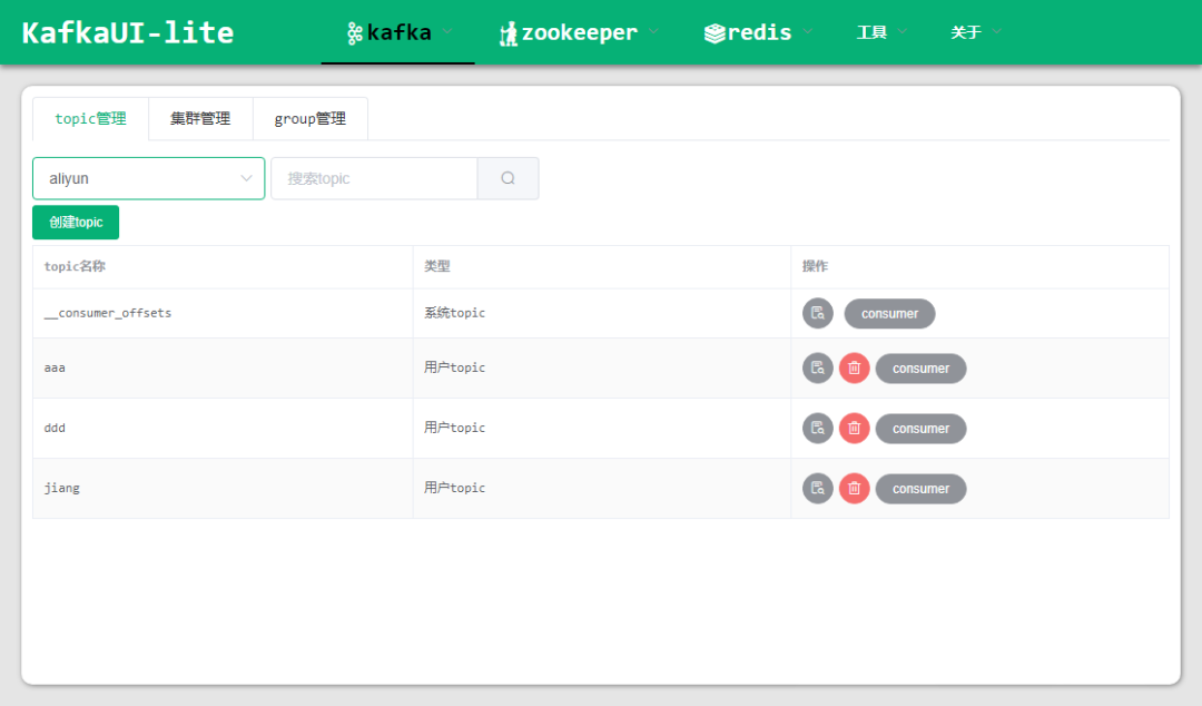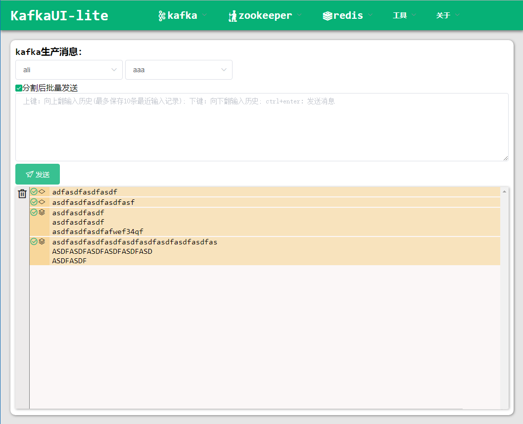 史上最轻便好用的kafka ui界面客户端工具,可以在生产消息、消费消息、管理topic、管理group;可以支持管理多个kafka集群 -