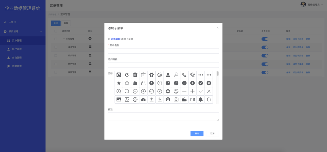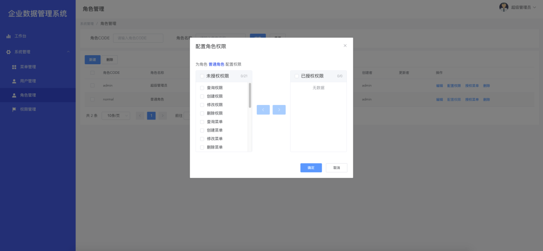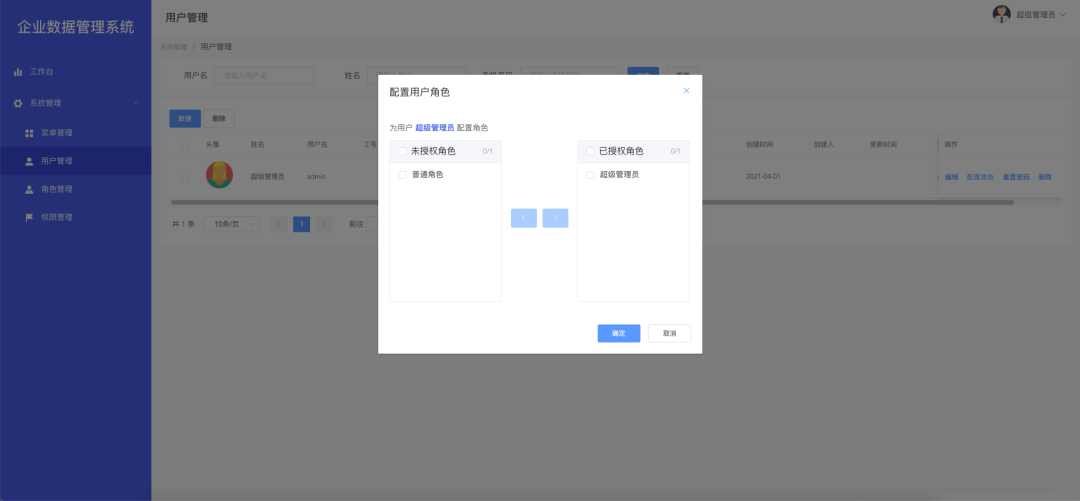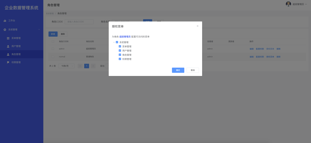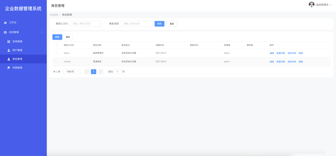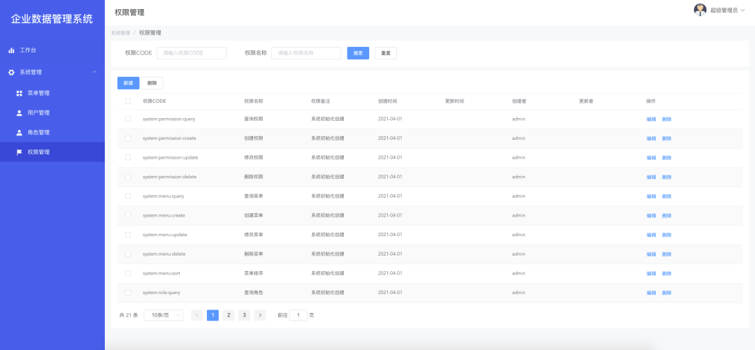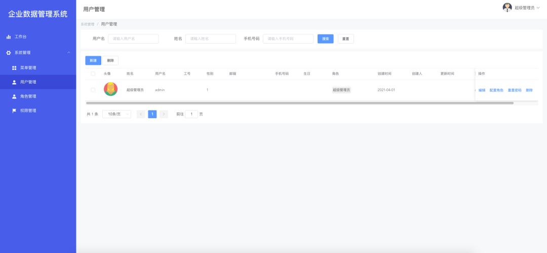此项目为企业数据管理系统的后端部分,前端部分请参考vue-admin,项目实现了菜单管理、用户管理、角色管理和权限管理四个基础模块,前端菜单管理结合动态路由可自由添加菜单。结合Shiro权限管理实现了菜单和按钮的权限控制。