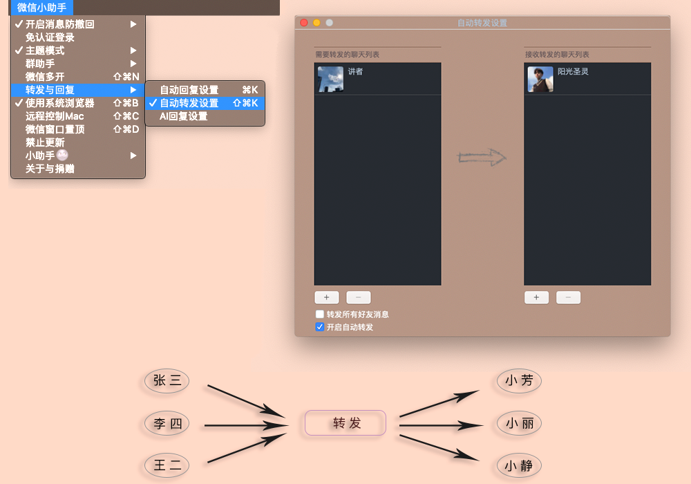 本项目是Mac 微信功能拓展/微信插件/微信小助手(A plugin for Mac WeChat)。