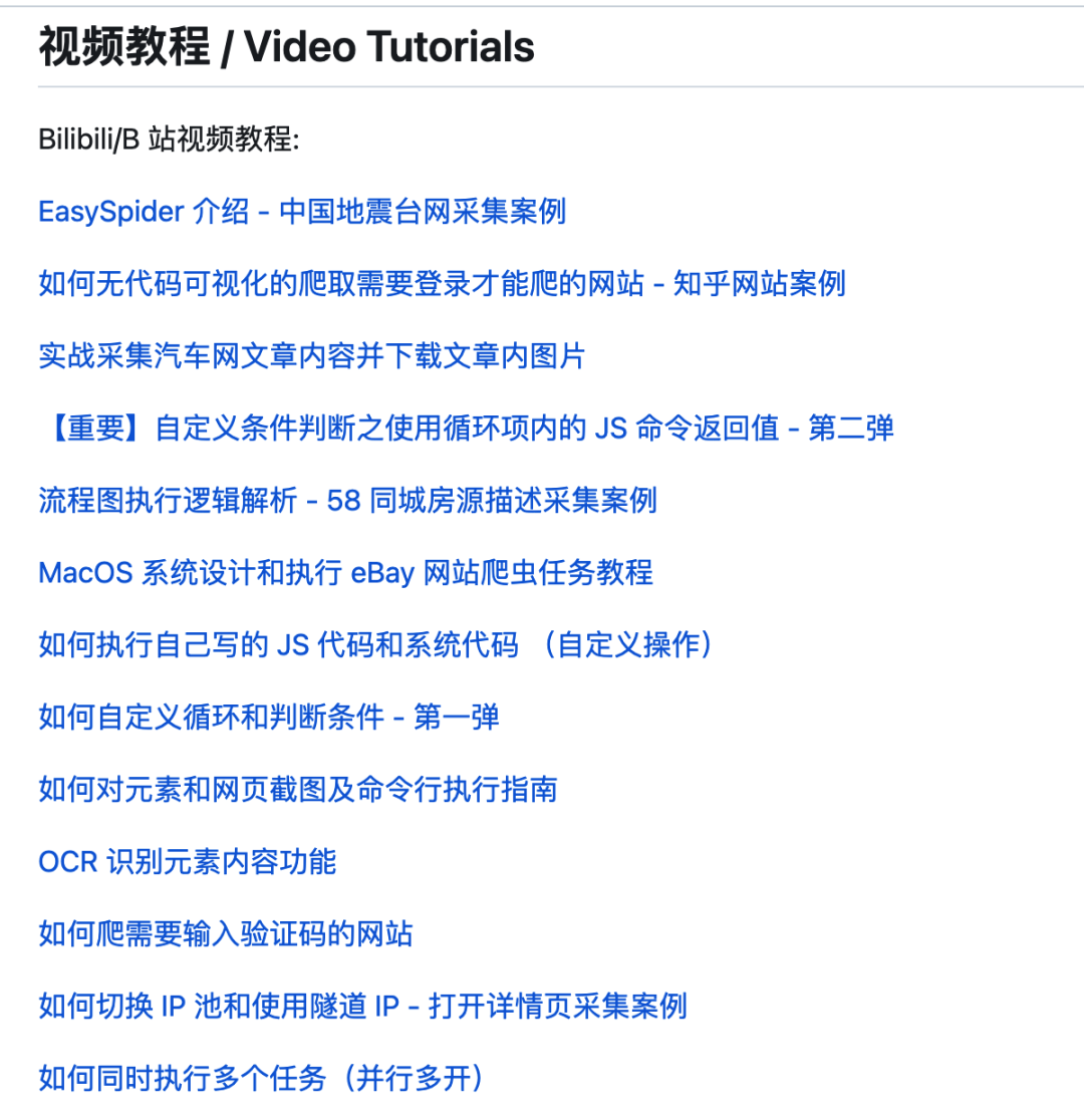 这个开源项目还非常人性化提供了爬虫案例以及使用视频教程。
