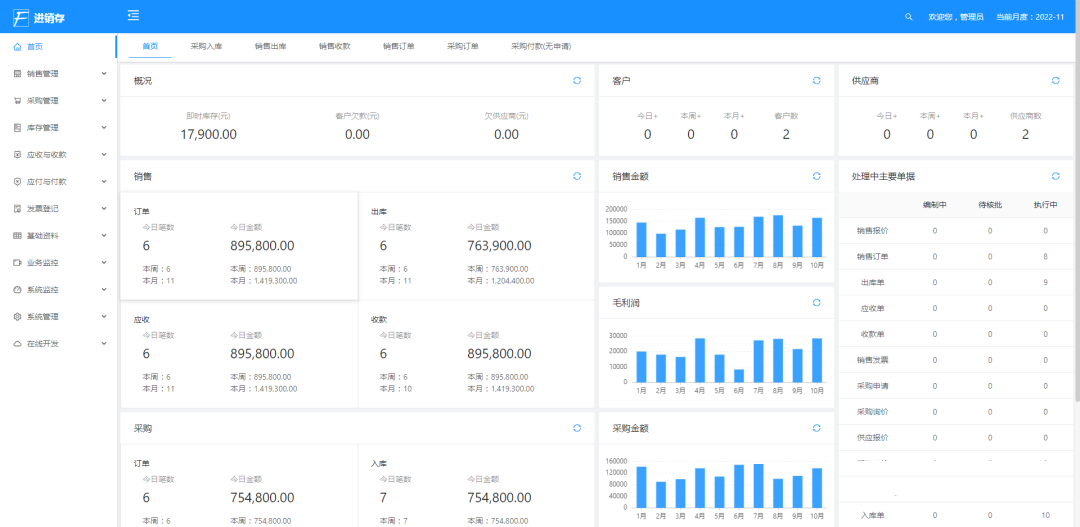 Finer 进销存系统是一款面向中小企业的管理软件,基于十多年的中小企业管理经验,由ERP领域的资深专家分析设计;基于J2EE快速开发平台Jeecg-Boot开发,前后端分离架构SpringBoot2.x、Ant Design&Vue、Mybatis-plus、Shiro、JWT;