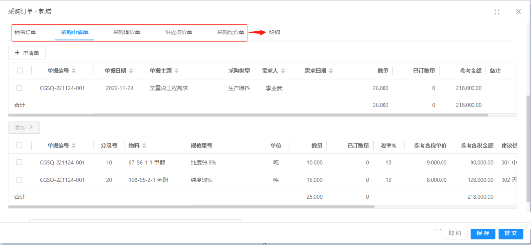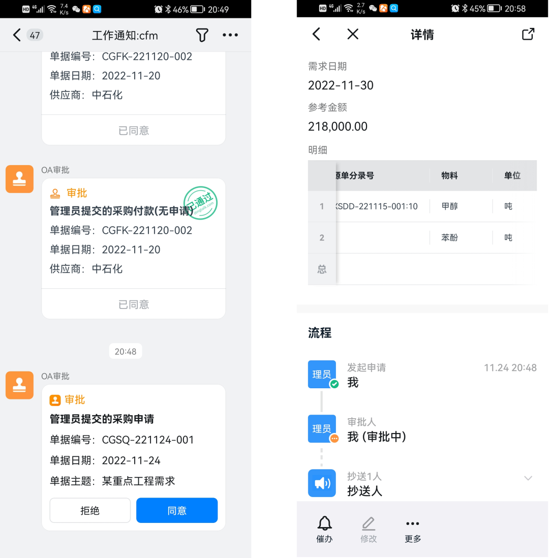 商业版: 实现进销存业务的全过程管理,包括从申请、询价、报价、比价、订单开始的业务全过程, 自动跟踪单据的处理情况,实时反映库存情况、客户欠款和欠供应商款等,集成钉钉等第三方审批系统。