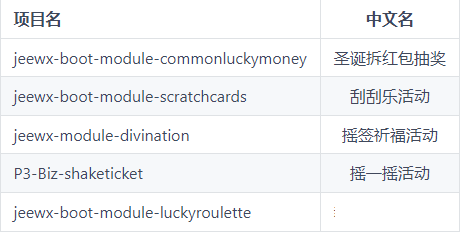 技术架构:SpringBoot2.1.3 + Mybatis + Velocity;采用插件开发机制,实现一个抽奖活动一个独立插件(对JAVA来讲就是一个JAR包),可以很方便的做插拔,提供丰富的活动插件下载。。