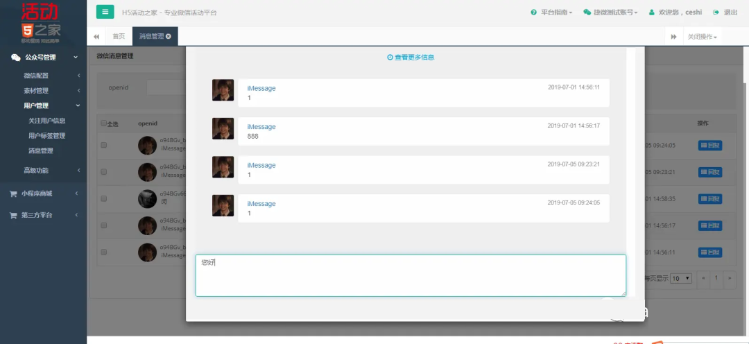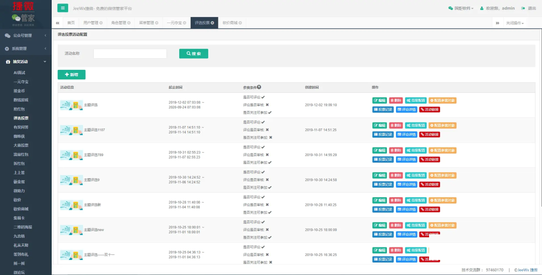 eewxBoot是一款JAVA微信管家平台,支持微信公众号、小程序、微信第三方平台、抽奖活动等。JeewxBoot已经实现了系统权限管理、公众号管理、抽奖活动等基础功能,便于二次开发,可以快速搭建微信应用!