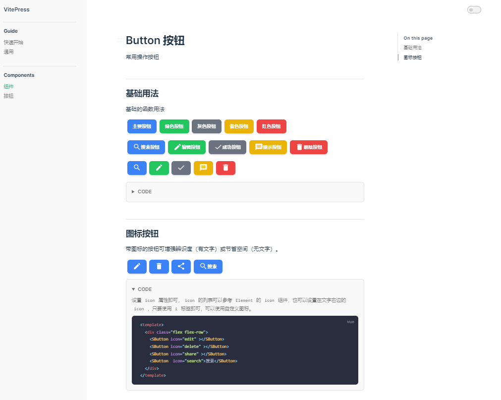 <SButton color="green" icon="edit">编辑按钮</SButton>