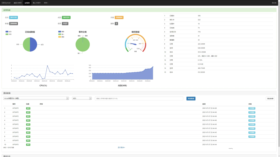 实时监控,驱动全量或增量实时同步运行状态、结果、同步日志和系统日志 -
