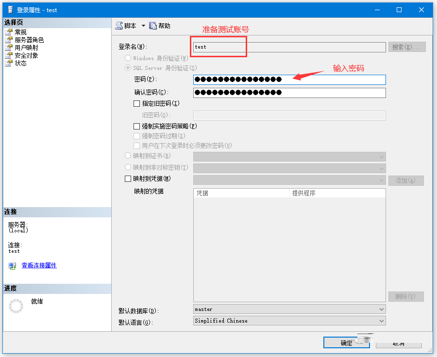 2.准备测试账号,test