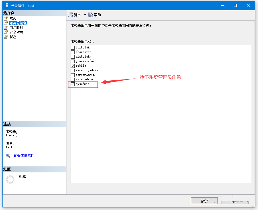 3.分配sysadmin角色