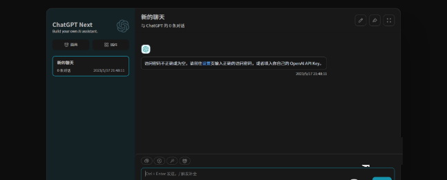 请确保你添加了 OPENAI_API_KEY,否则无法使用; -