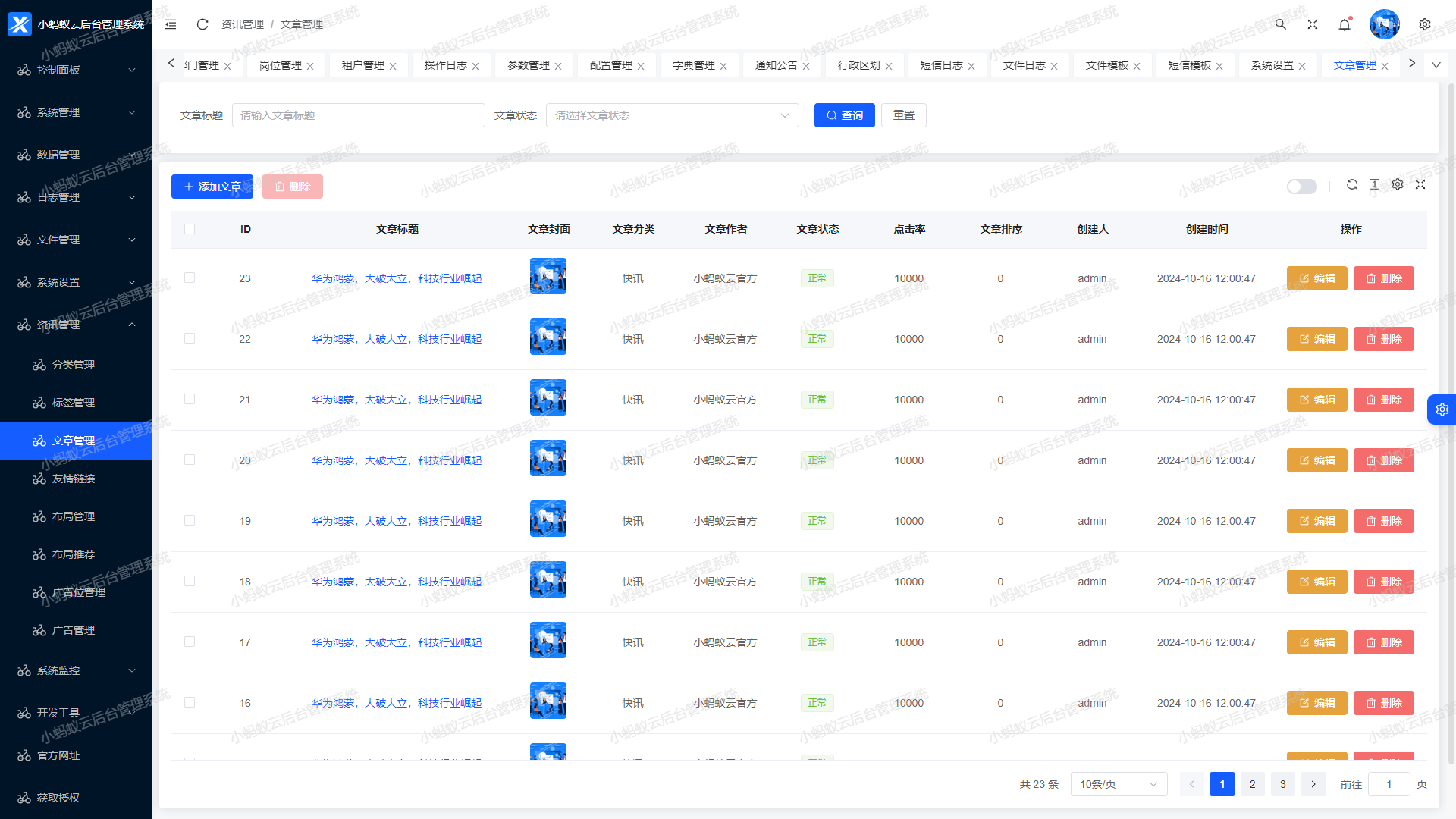 • 通知公告:主要对通知、公告等站外、站内数据进行管理;