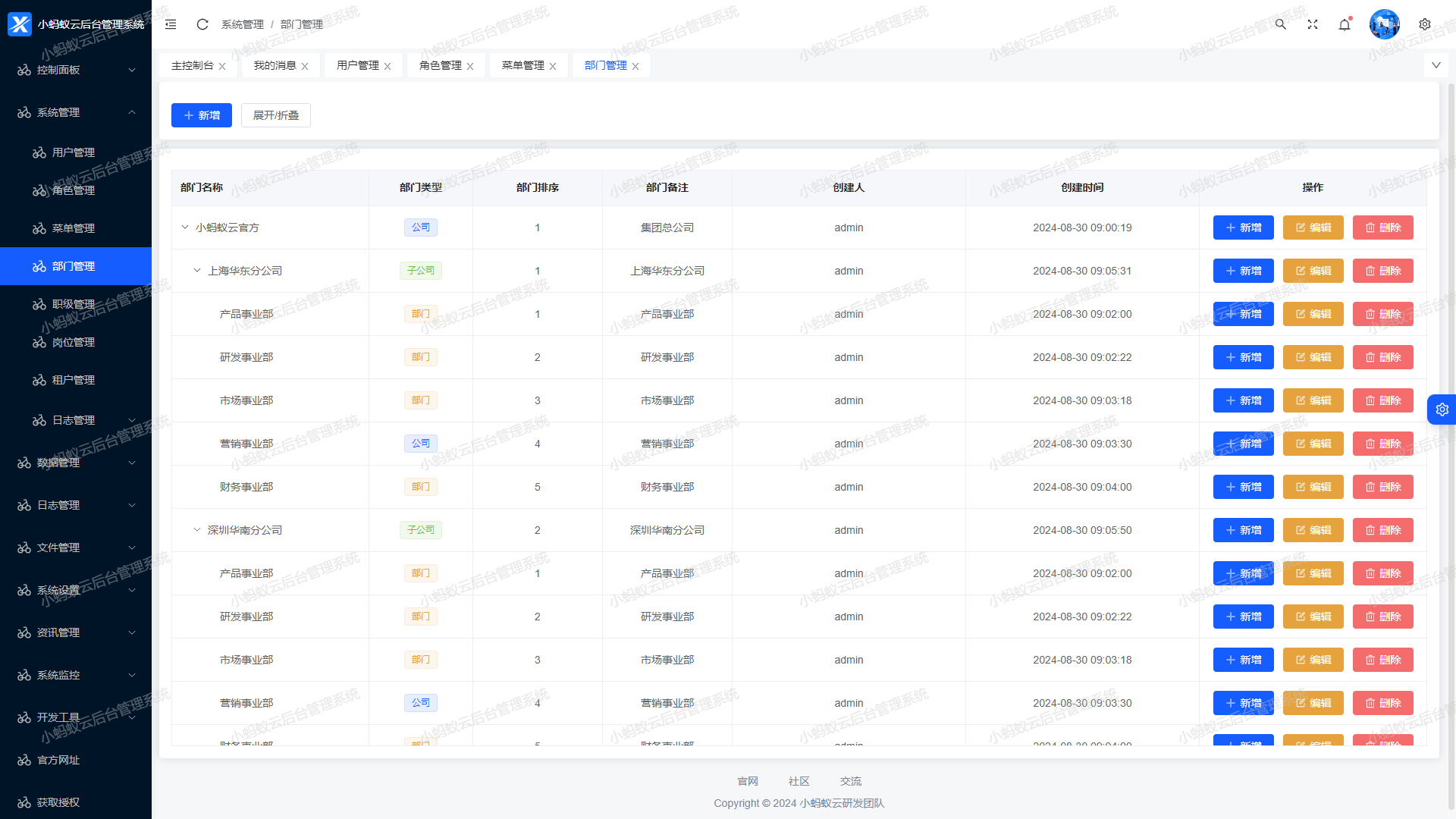 • 部门管理:用于管理系统架构体系中的部门数据;