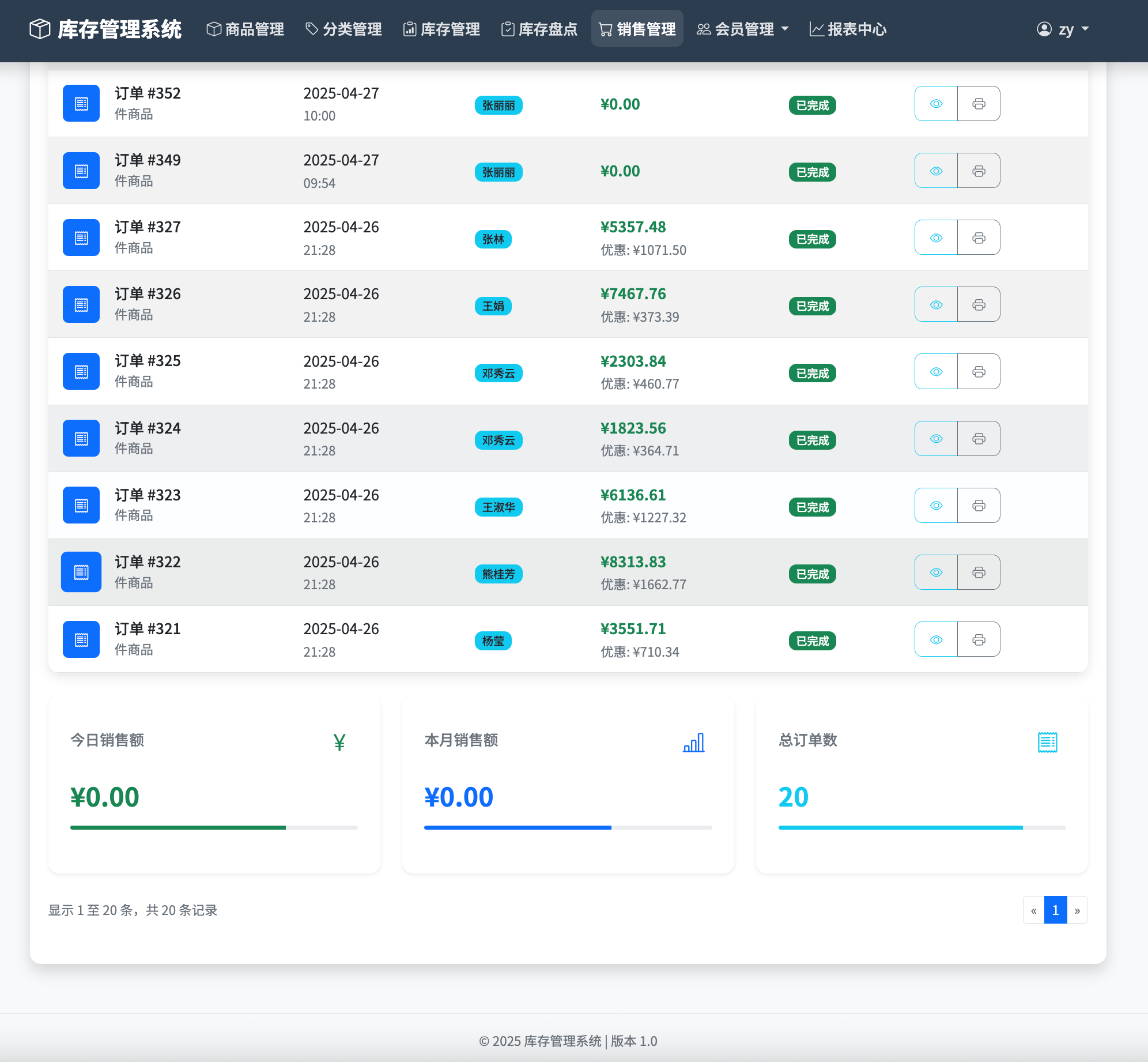 销售单创建:提供直观界面快速完成商品销售操作。