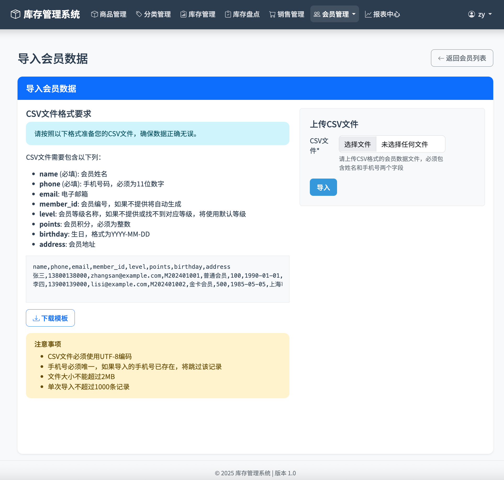 会员信息管理:记录会员姓名、联系方式、地址等详细资料。