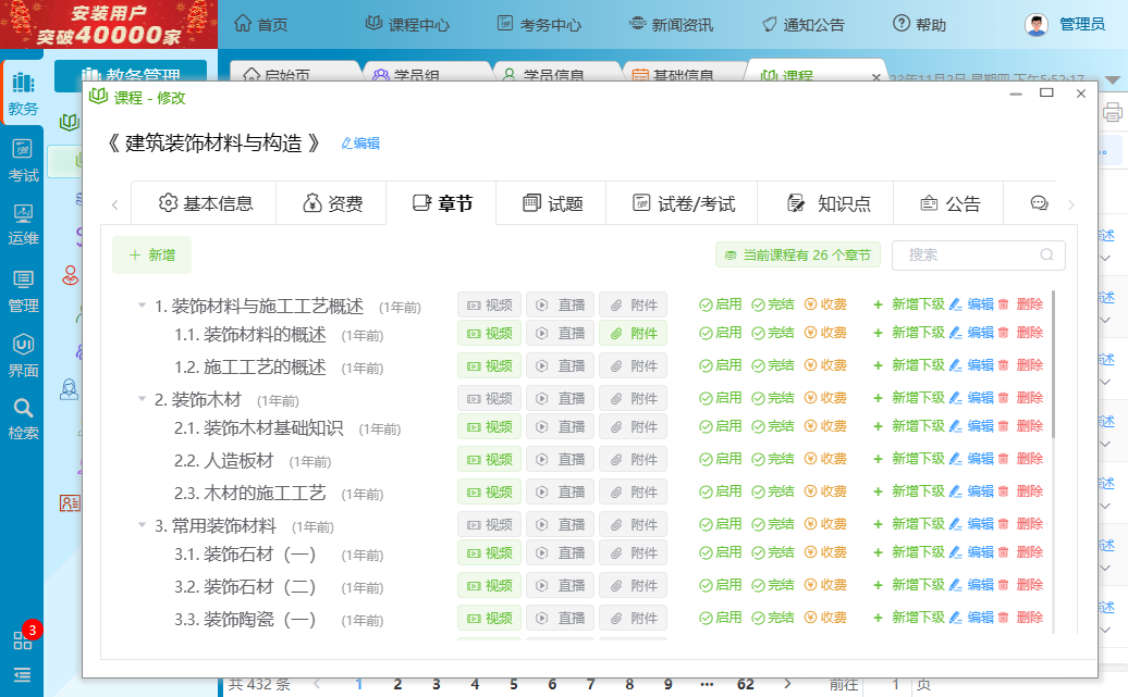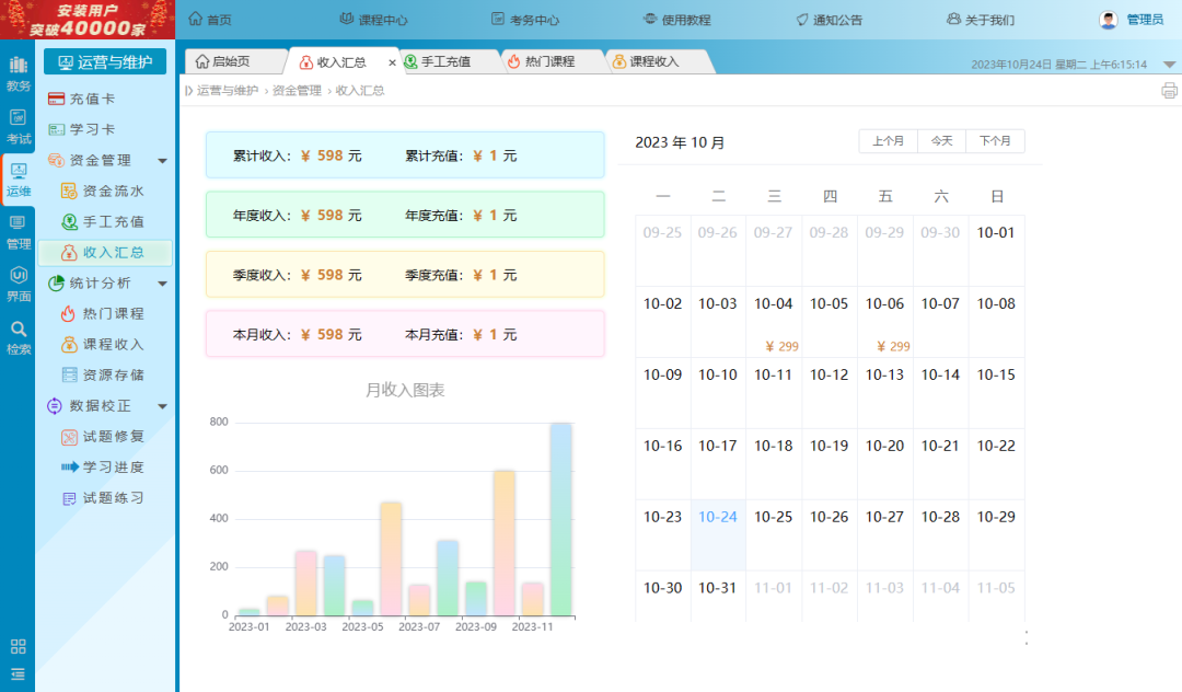 课程信息编辑、课程费用设置。课程信息编辑可编辑课程基础信息;课程费用设置能设置课程收费模式。