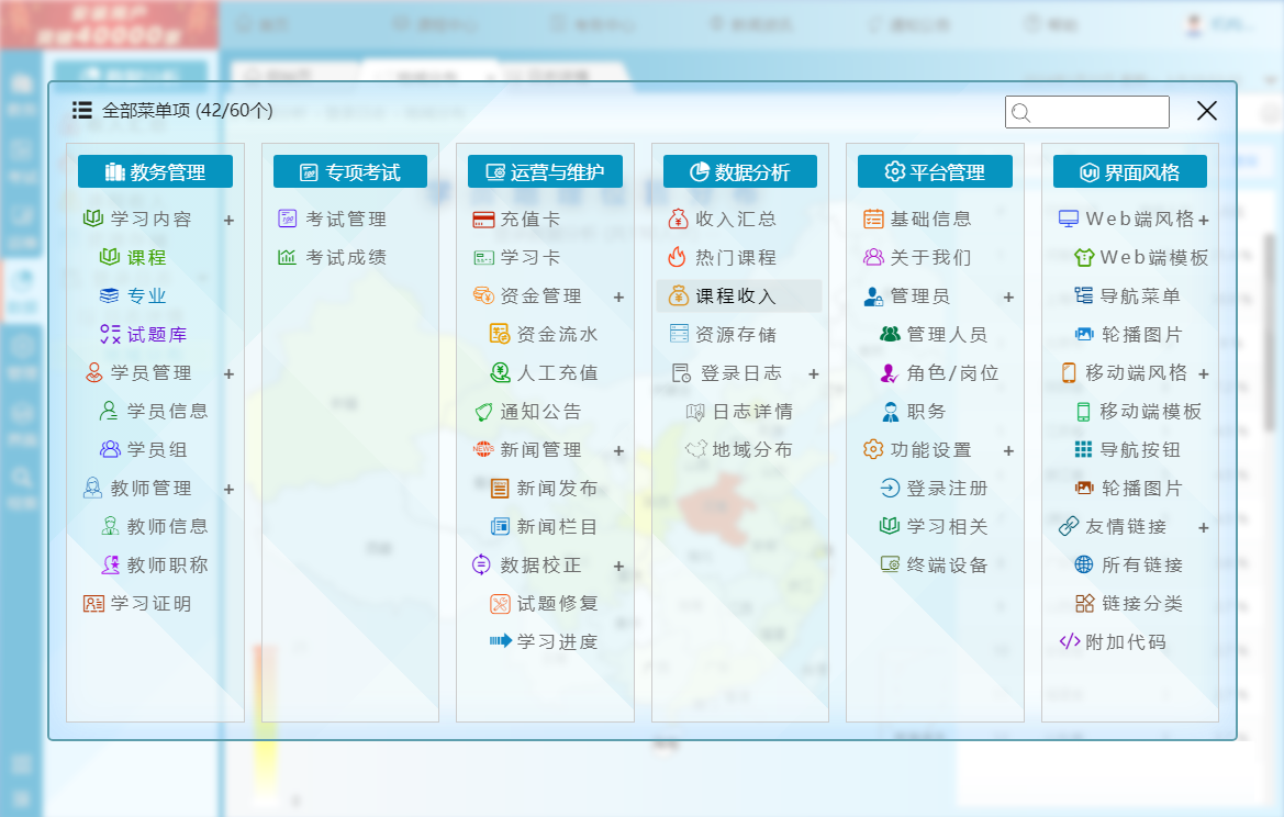 单独开课和学员组开课、学习卡管理。单独开课和学员组开课可为个人或组分配课程;学习卡管理能管理学习卡的开课、激活和批量派发。