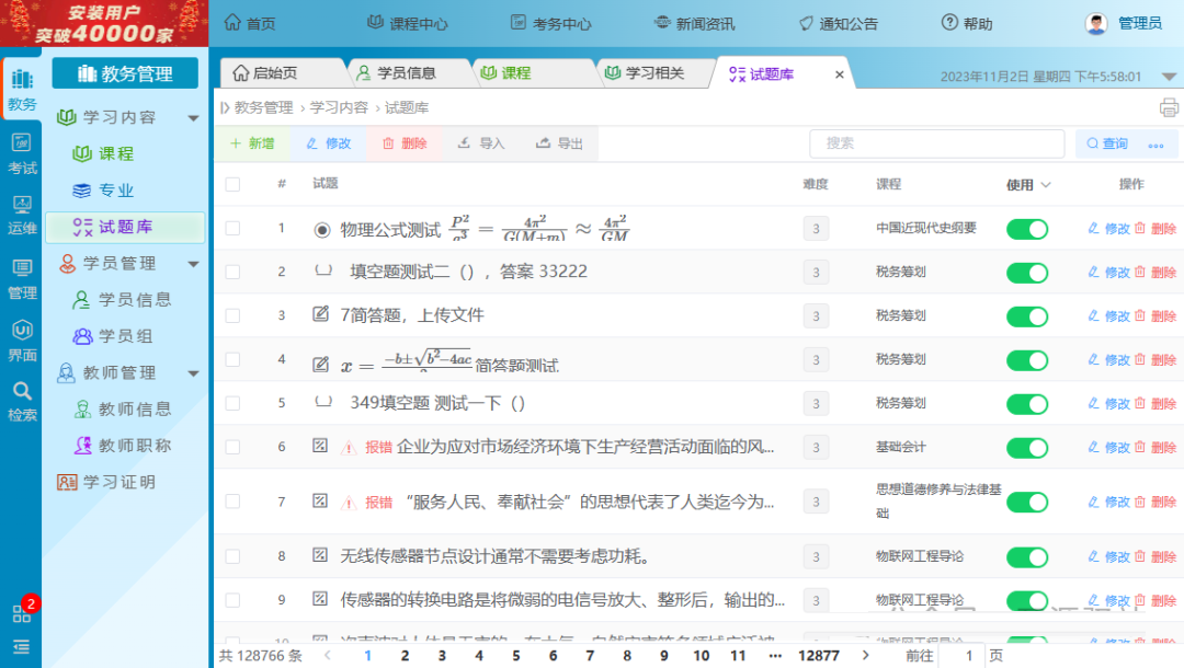 试题导入、试题查重、试题导出。试题导入支持批量导入试题;试题查重可自动检测重复试题;试题导出能按需导出试题。