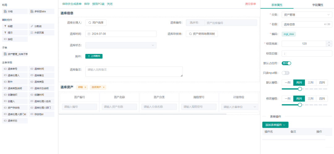 采购申请:与资产信息联动,支持预算控制(金额阈值校验)。