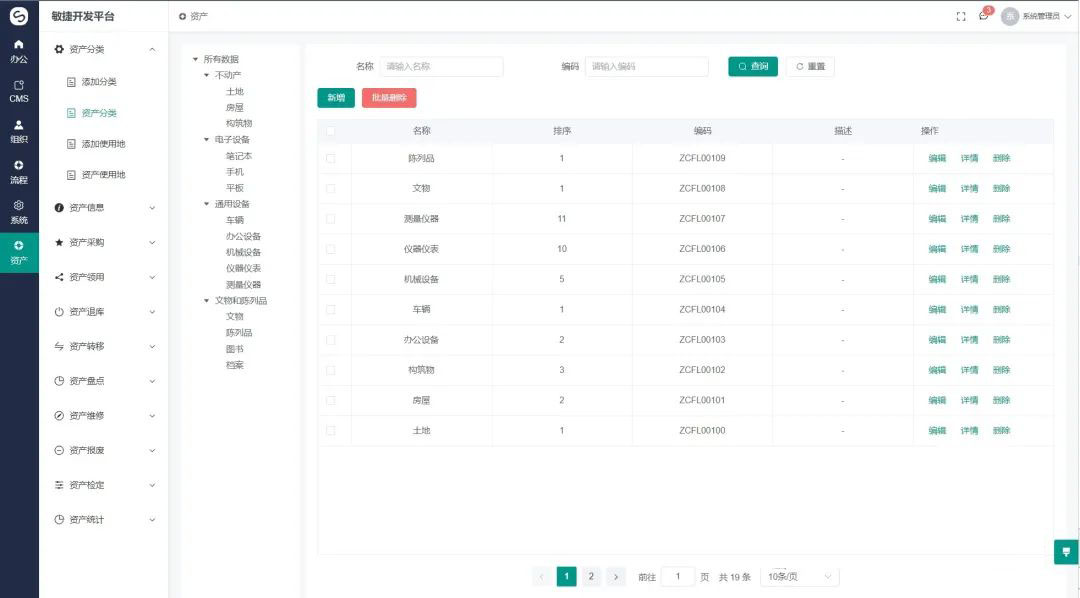 字典分类管理:动态数据字典(如“地区/部门/职称”),支持多语言配置。