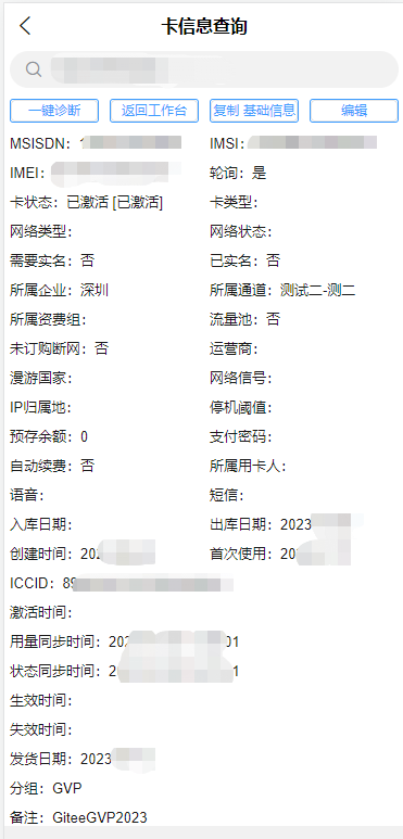 卡信息查询(套餐详情、流量余额、使用记录)。