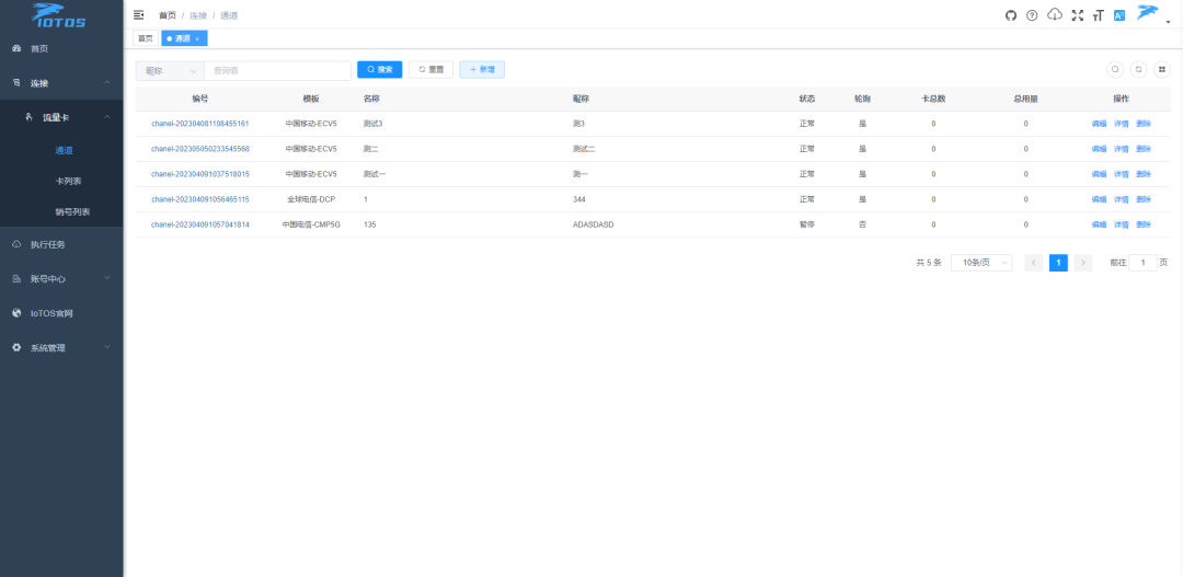 连接(流量卡、设备、通道运营管理)