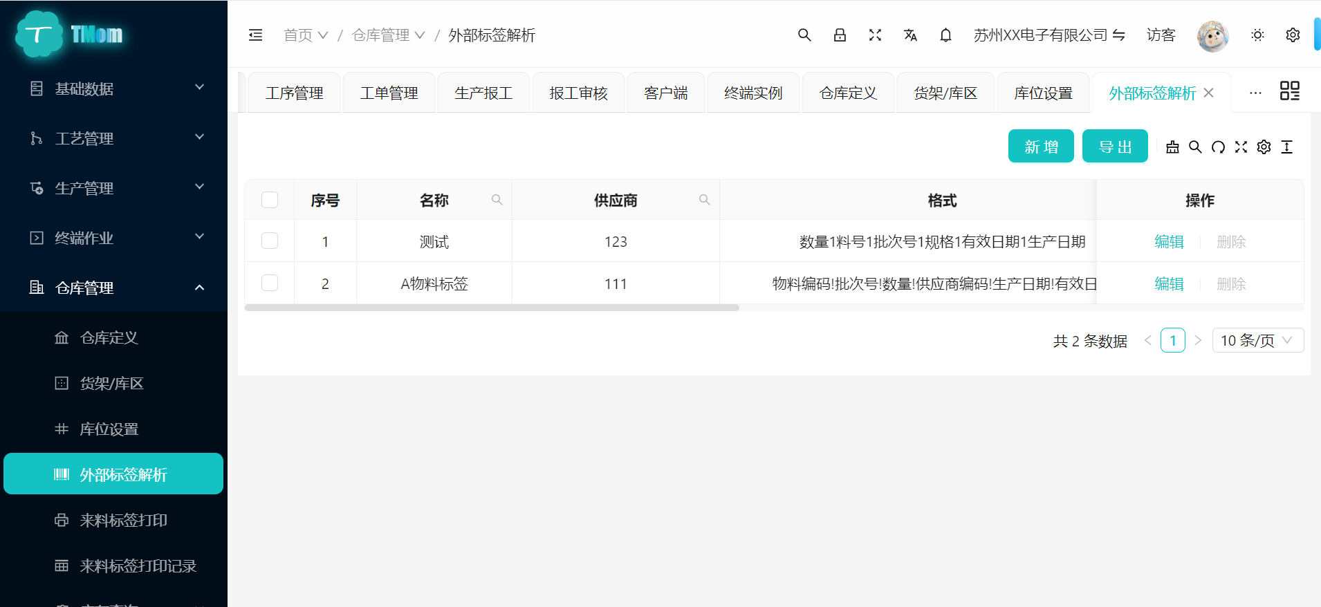 外部标签解析:解析外部标签信息,用于入库和出库时的识别和记录。