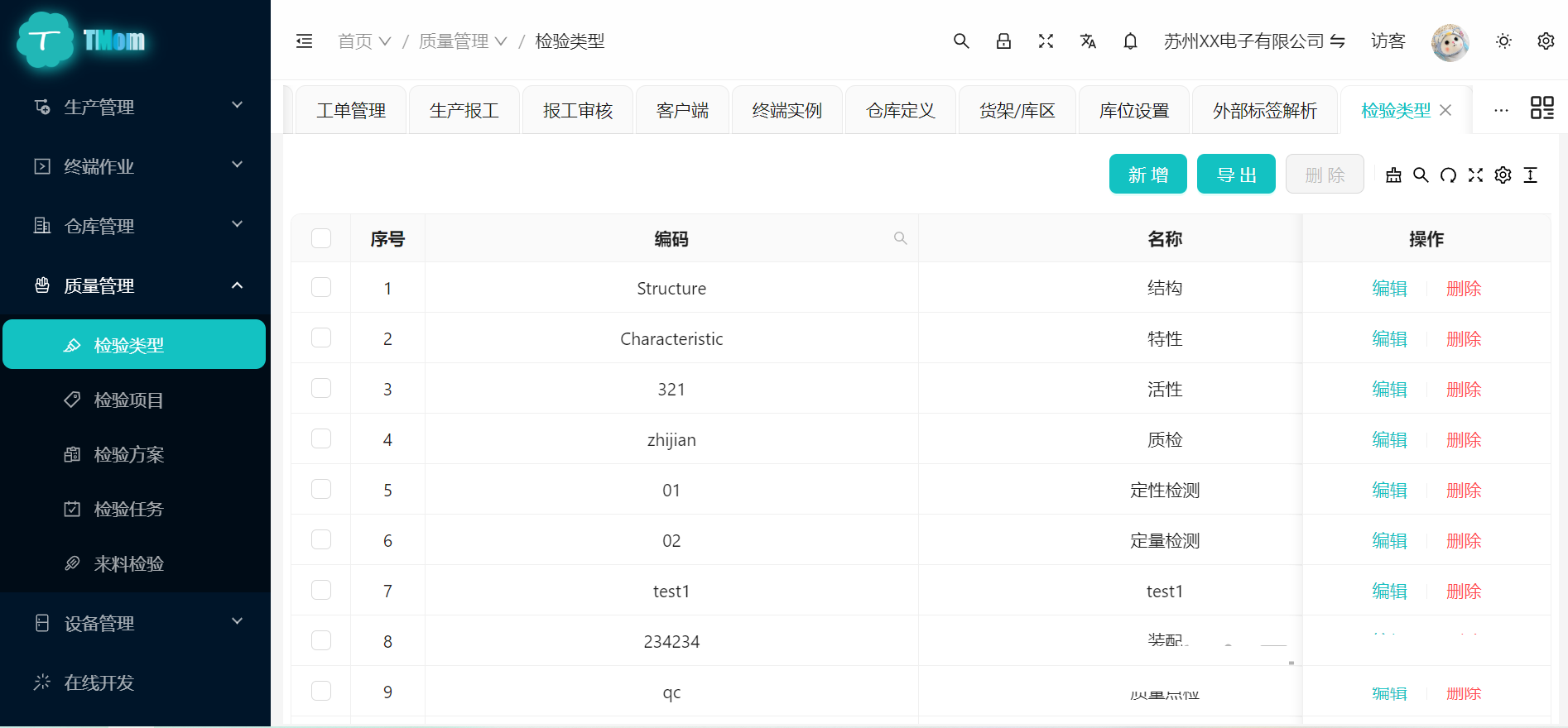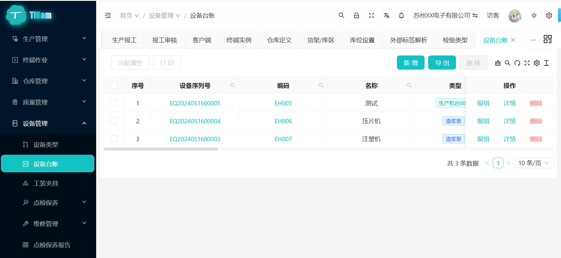 设备类型:定义和管理不同类型的生产设备,明确其特性和用途。